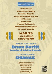 3/29(日)にAce Hotel 京都で開催されるイベント「Wax Works Vol.14」にFace Records KYOTOが出店します!