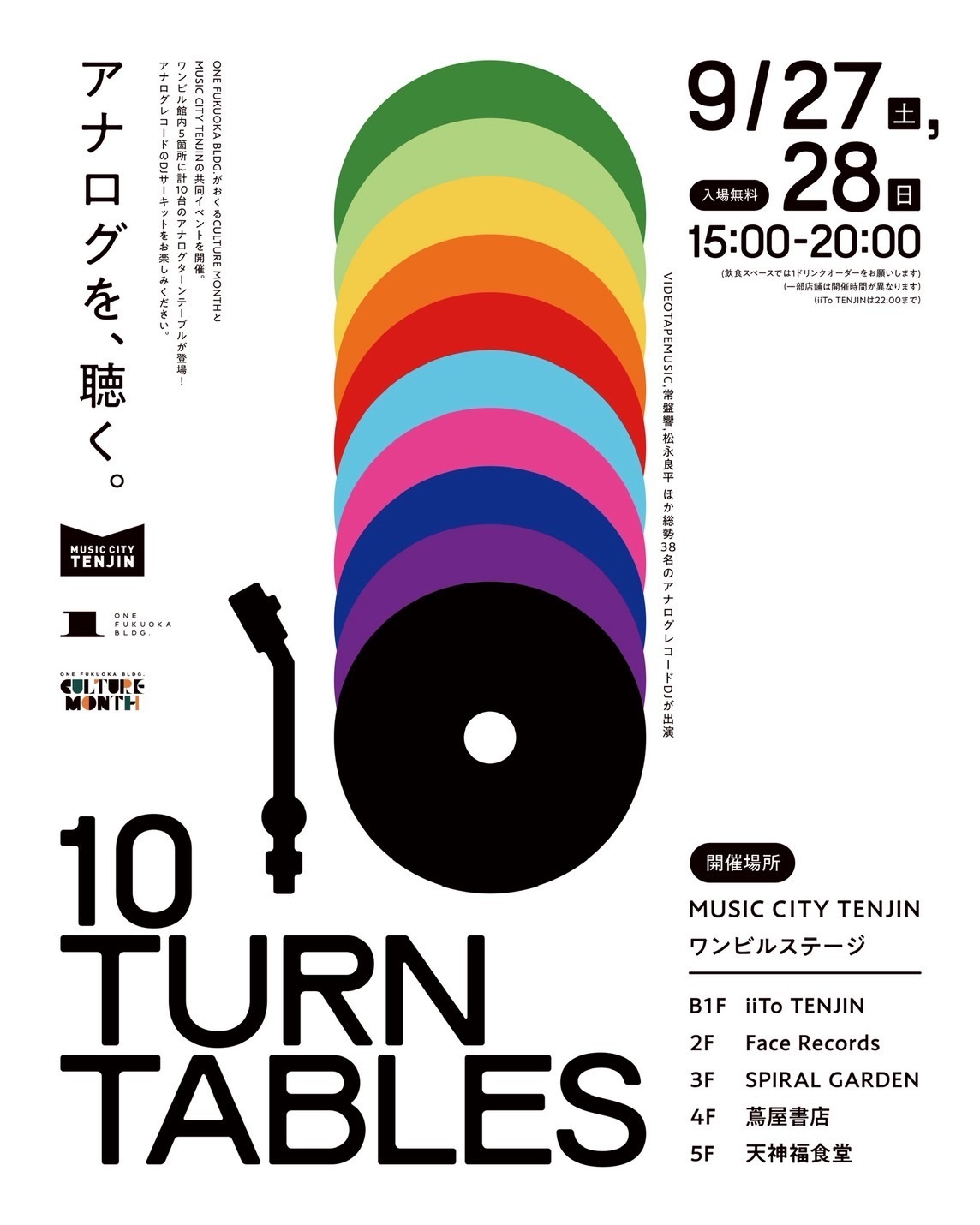 9/27(土)・28(日)に福岡・天神で開催されるイベント「MUSIC CITY TENJIN」にて、フェイスレコード福岡天神ワンビル店がインストアDJイベントを実施します!
